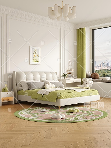 现代奶油风卧室3D模型下载