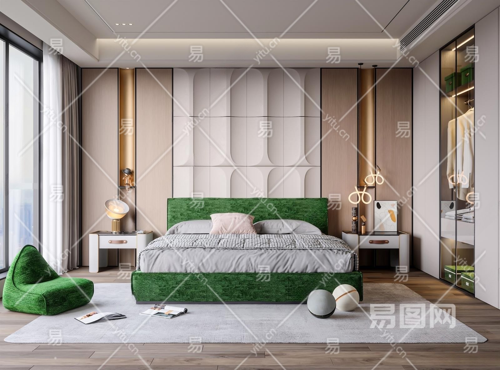 现代卧室3D模型下载