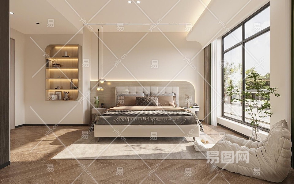 现代简约主卧室3D模型下载