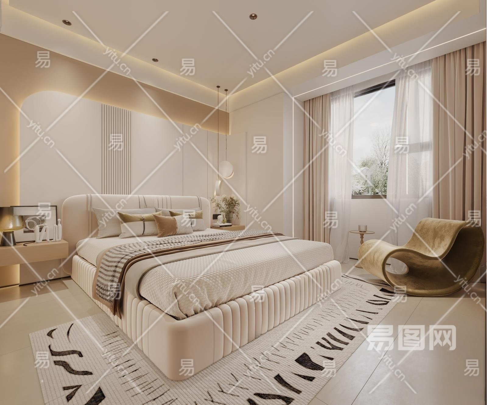 现代主卧3D模型下载