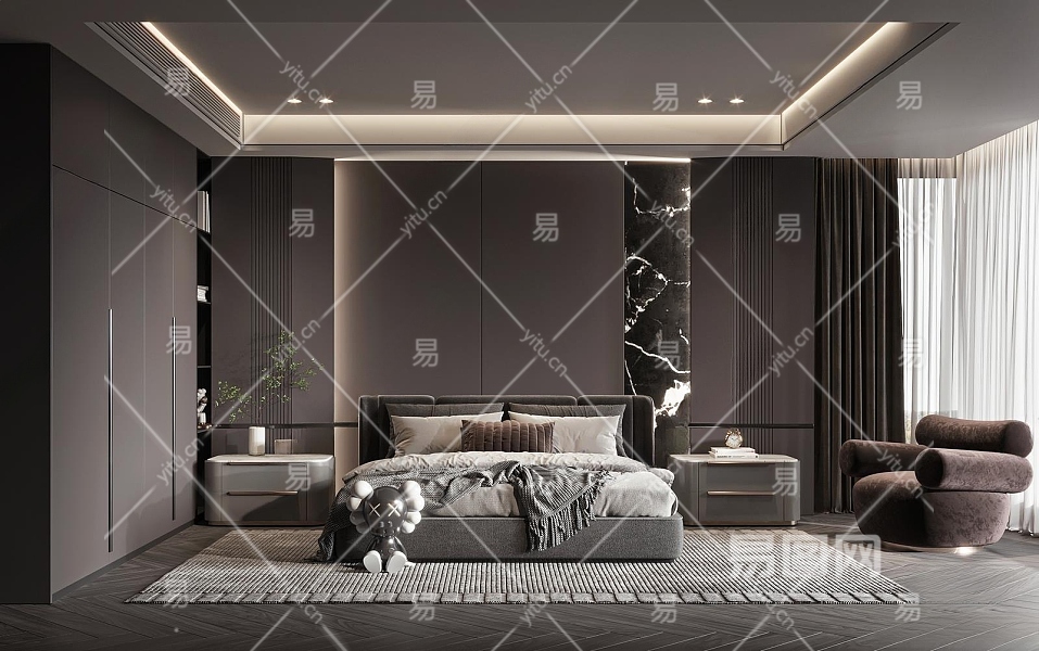 现代家居卧室3D模型下载