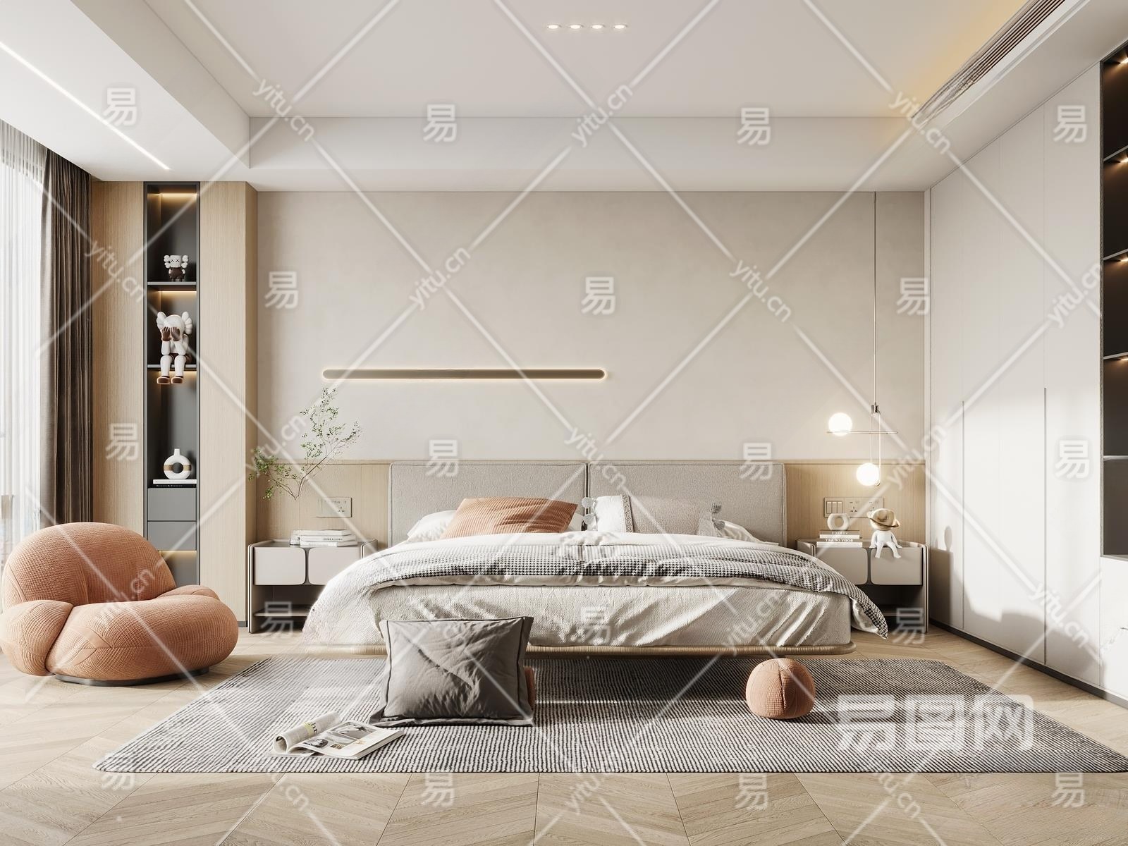 现代卧室3D模型下载