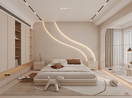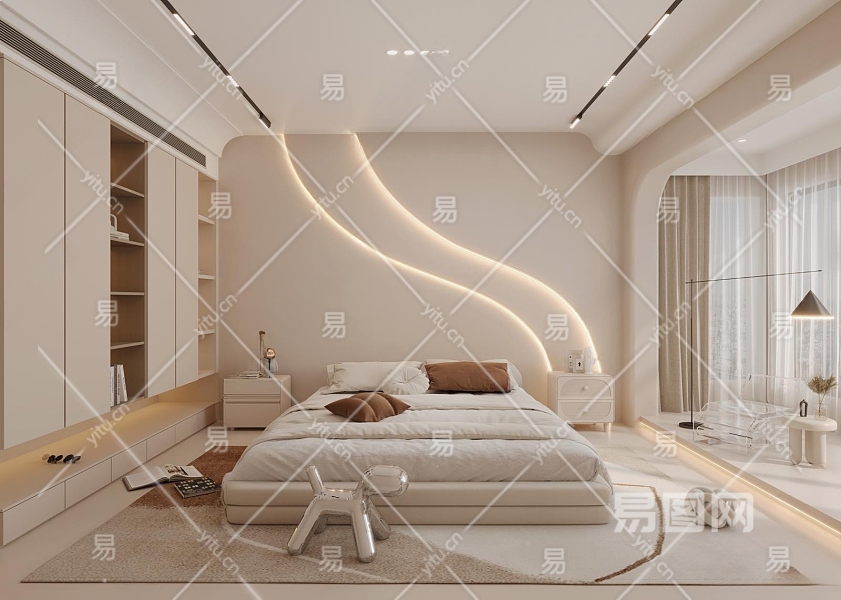 现代奶油风卧室3D模型下载