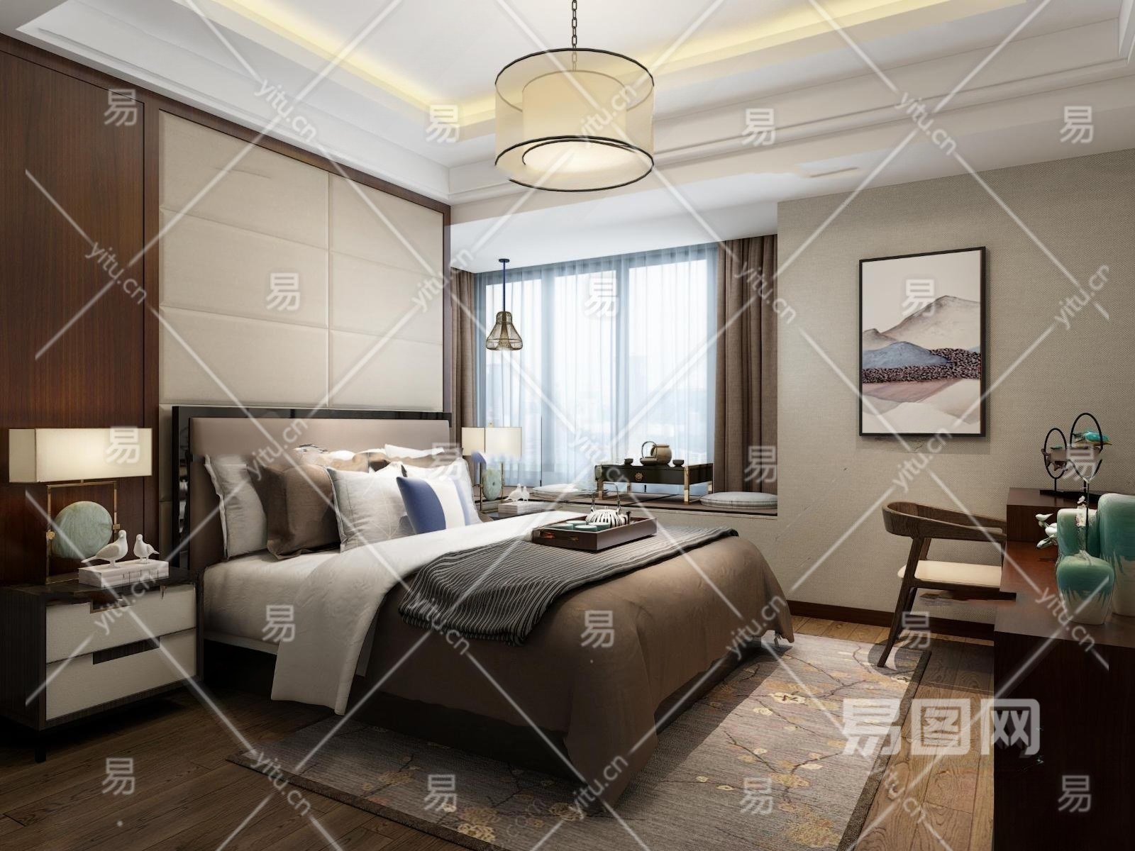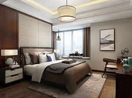 新中式主人房卧室3D模型下载