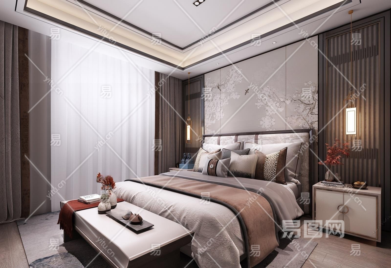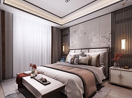 新中式卧室3D模型下载