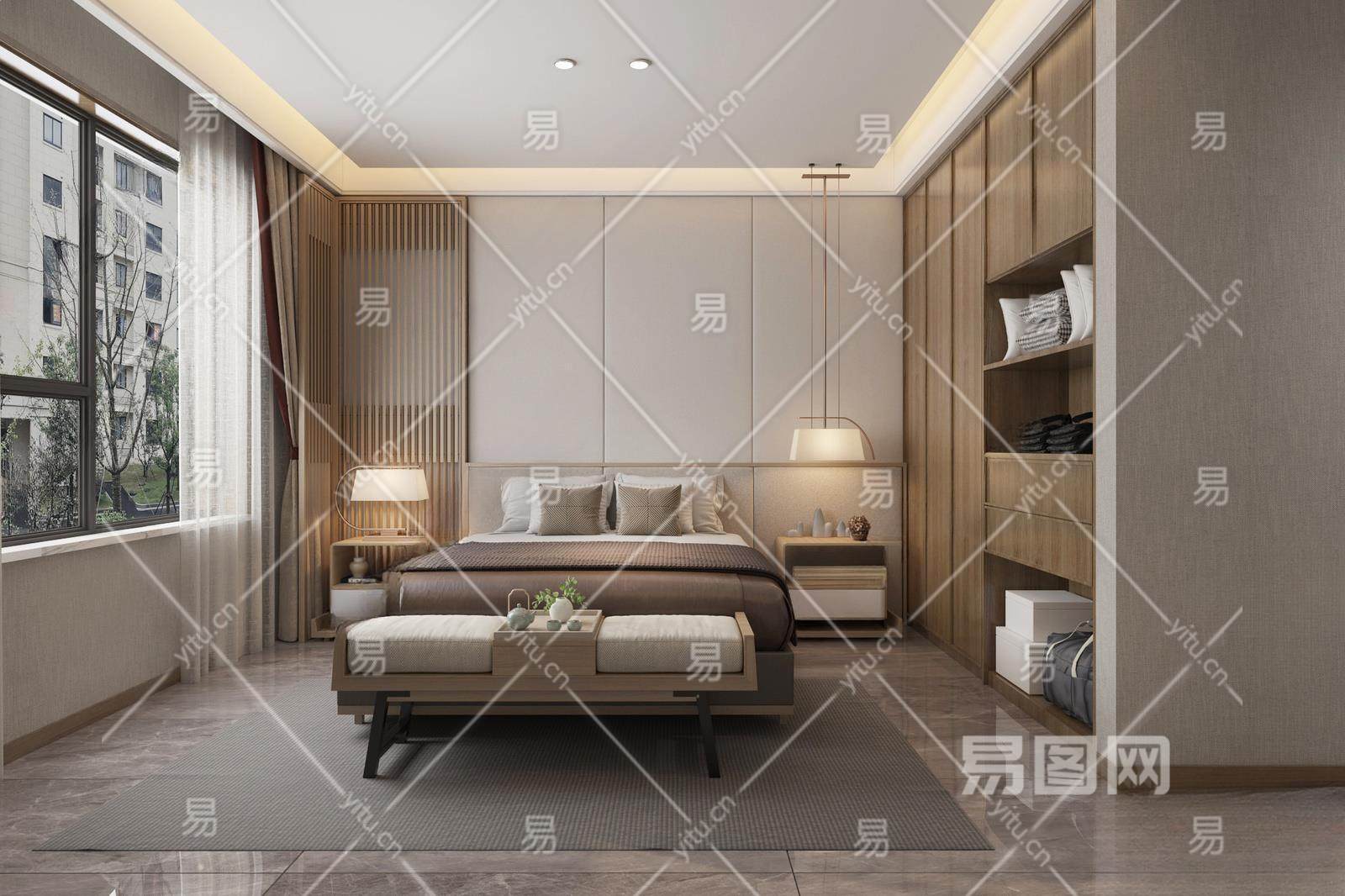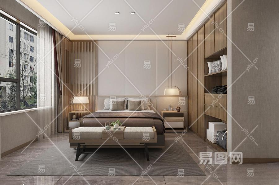 新中式卧室3D模型下载