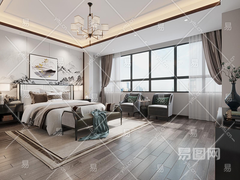 新中式主卧3D模型下载