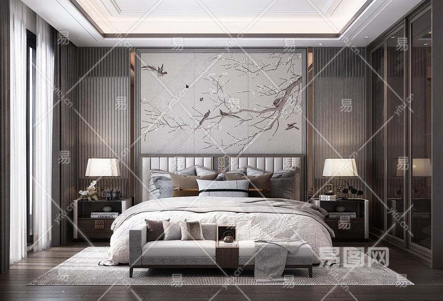 新中式家居卧室3D模型下载