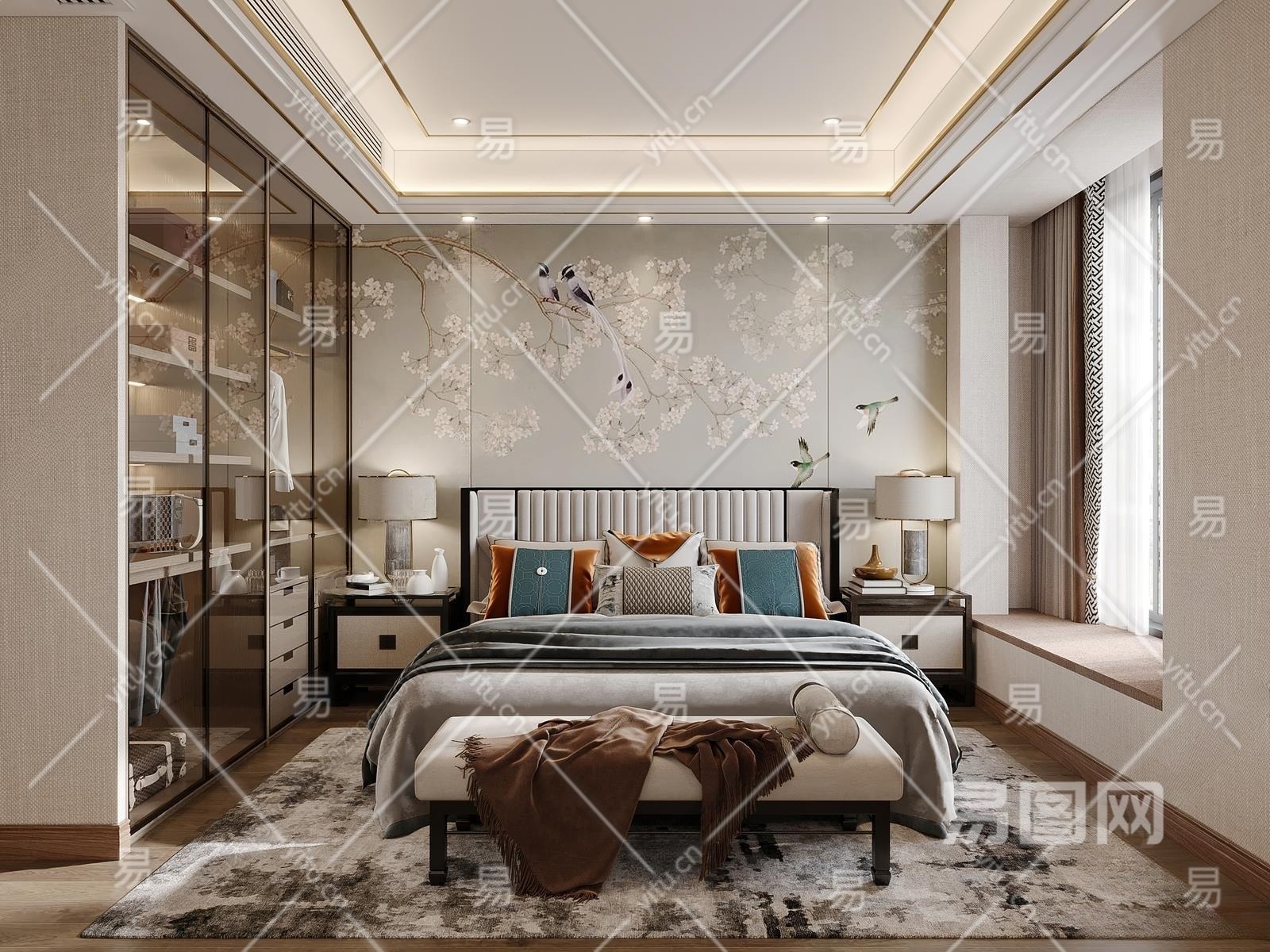 新中式卧室3D模型下载