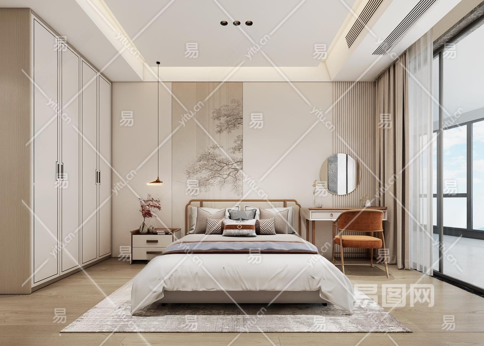 新中式家居卧室3D模型下载