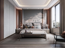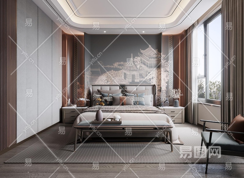 新中式卧室3D模型下载