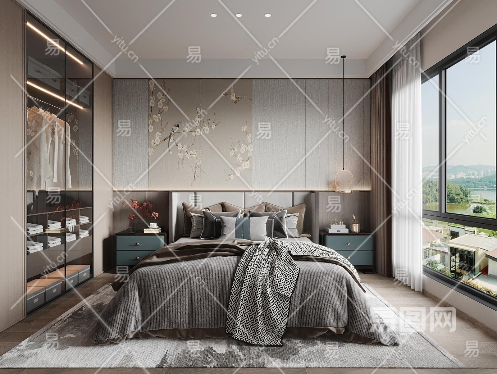 新中式家居卧室3D模型下载