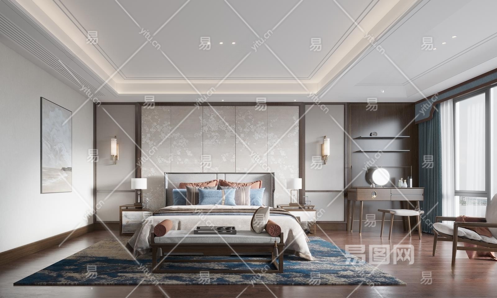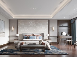 新中式卧室3D模型下载