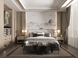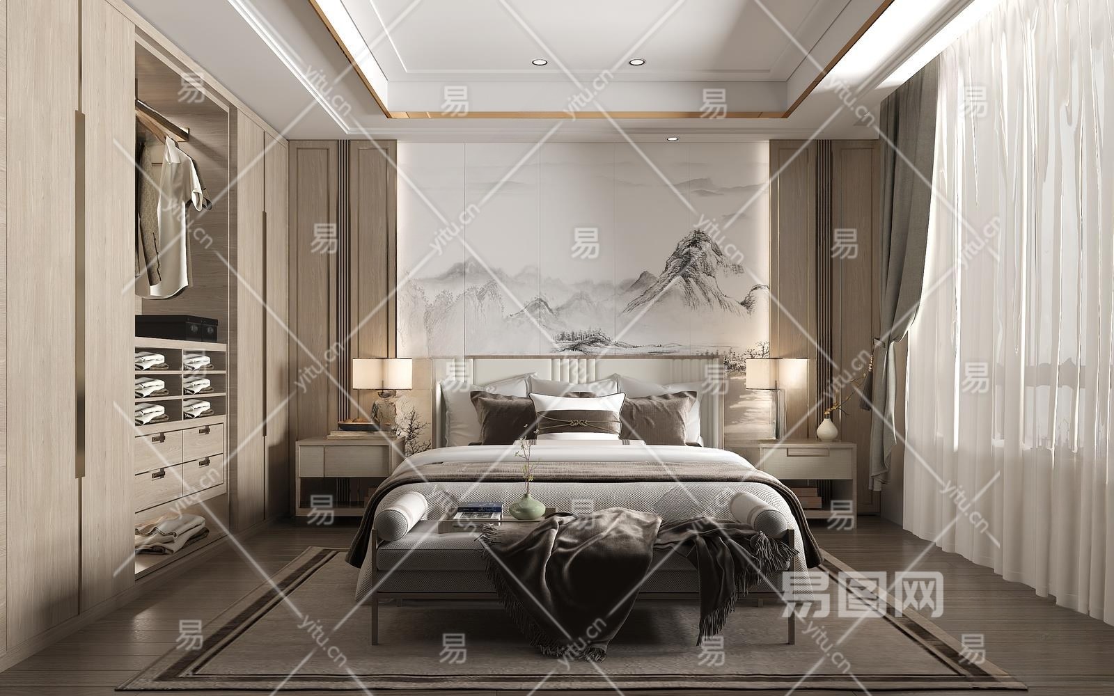 新中式家居卧室3D模型下载