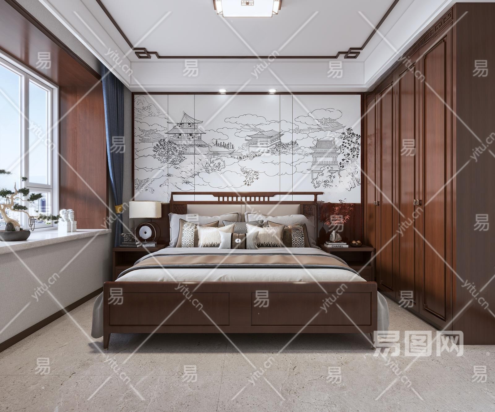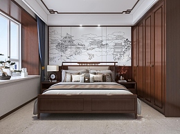 新中式家居卧室3D模型下载