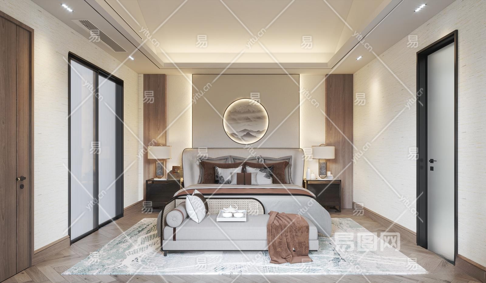 新中式家居卧室3D模型下载