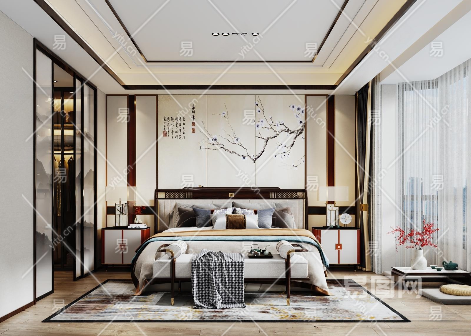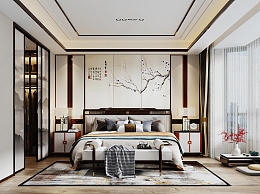新中式家居卧室3D模型下载