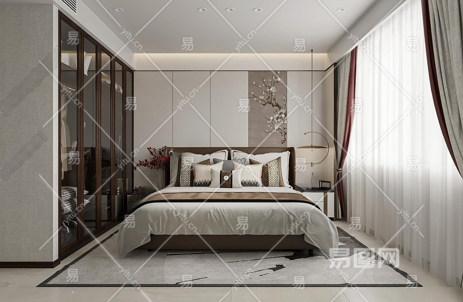 新中式卧室3D模型下载