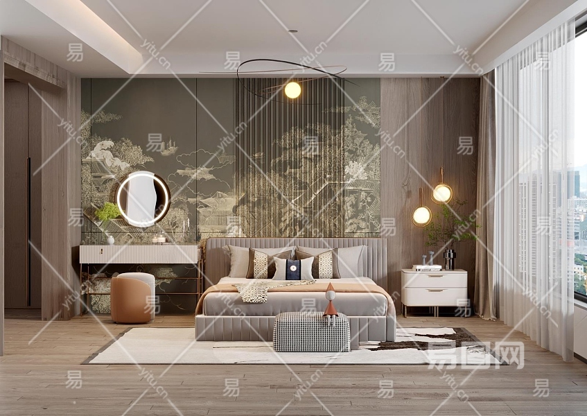 新中式卧室3D模型下载