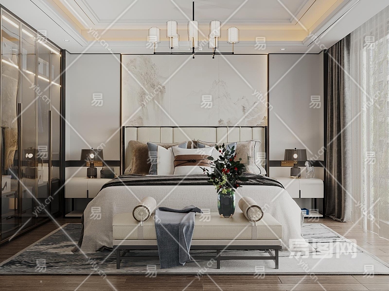 新中式卧室3D模型下载