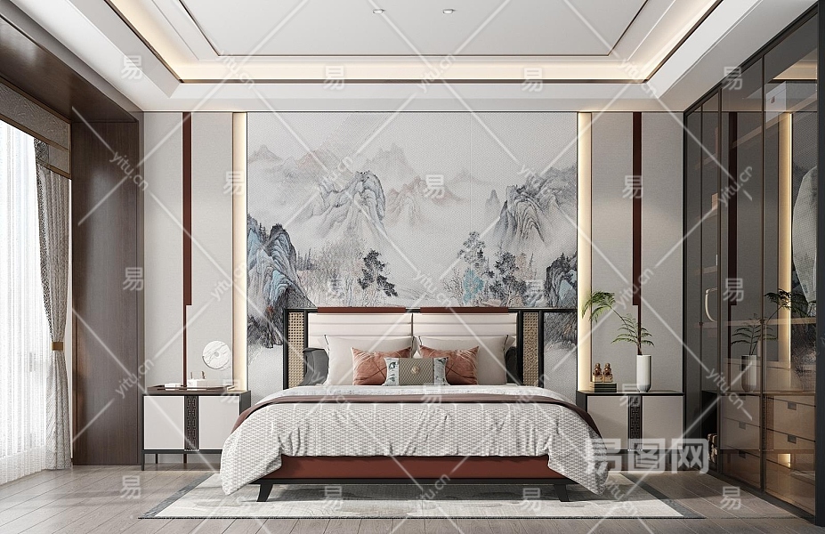 新中式卧室3D模型下载