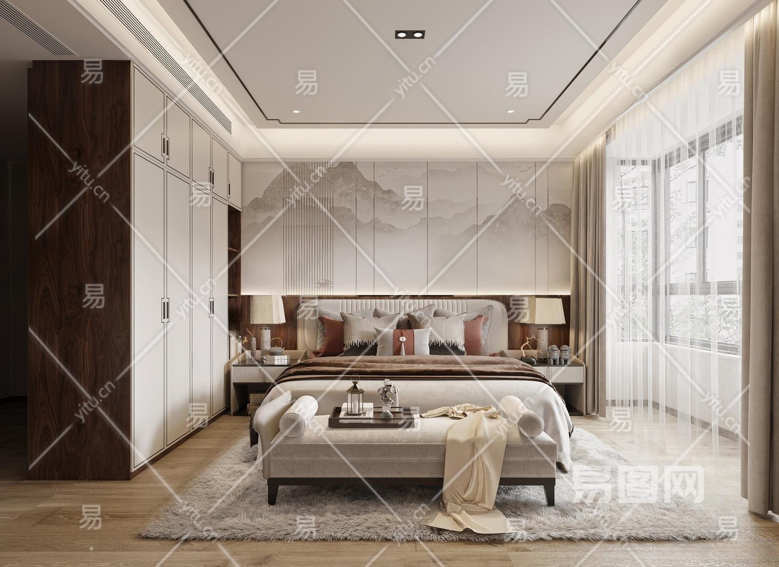 新中式家居卧室3D模型下载