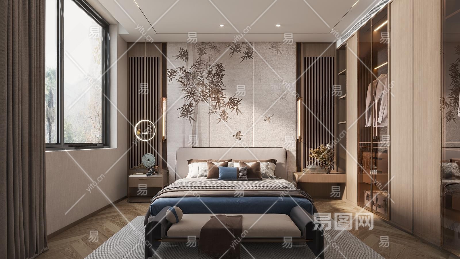 新中式家居卧室3D模型下载