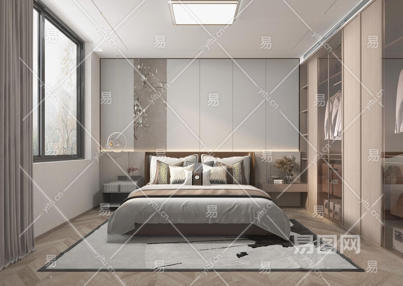新中式卧室3D模型下载