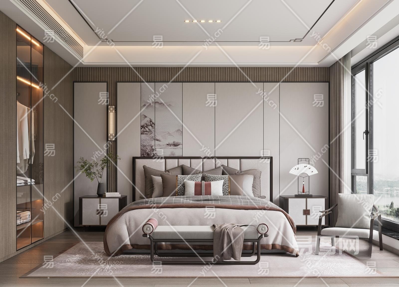 新中式家居卧室3D模型下载