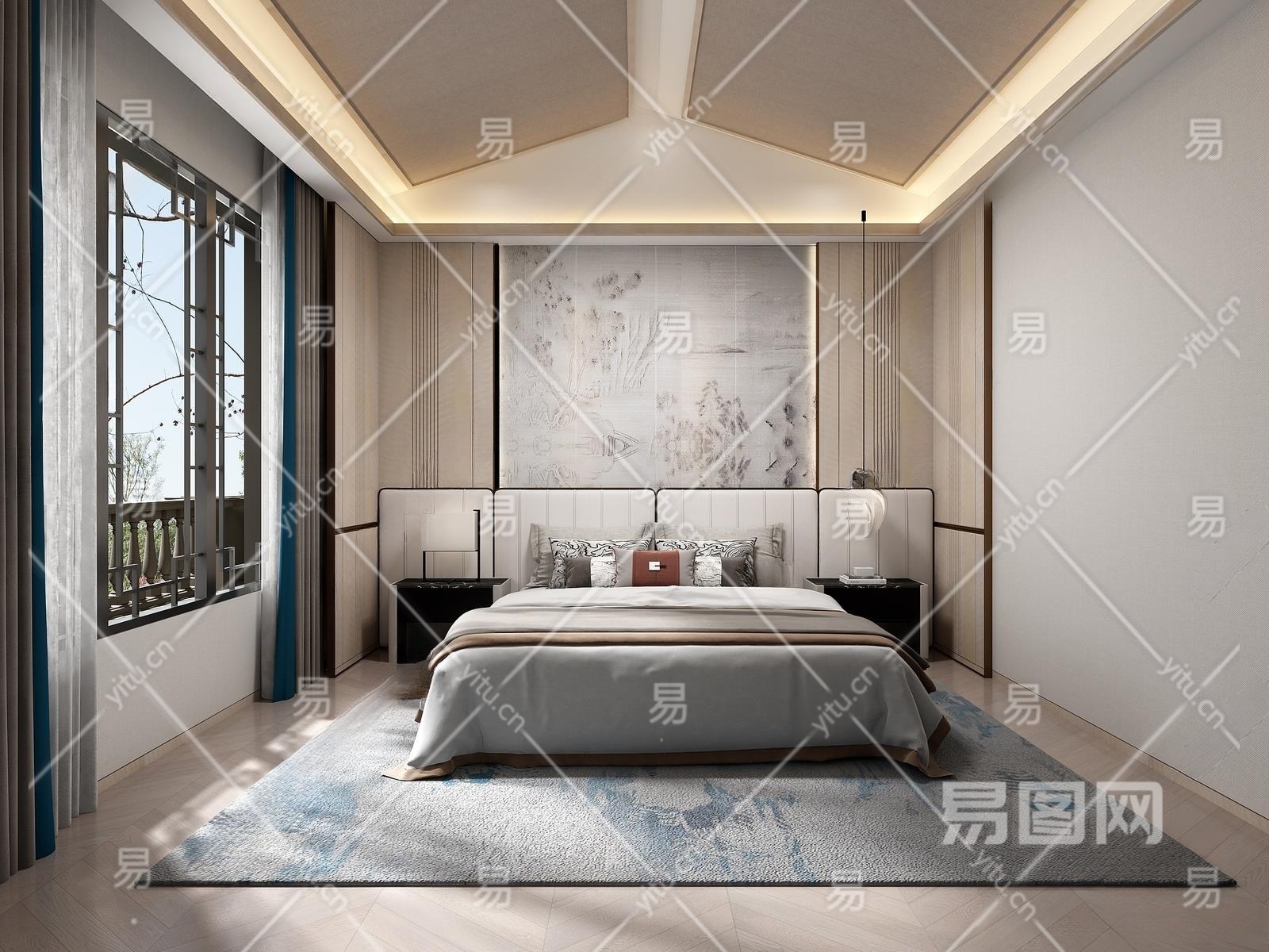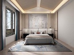 新中式卧室3D模型下载