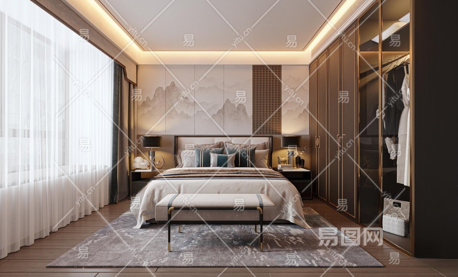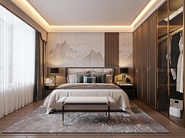 新中式家居卧室3D模型下载