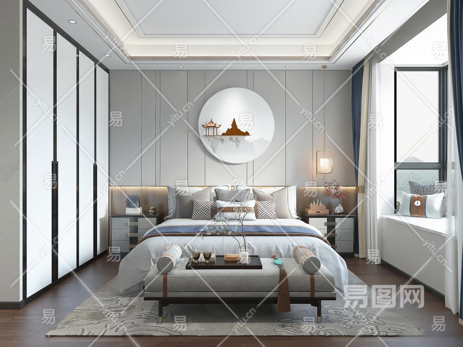 新中式家居卧室3D模型下载