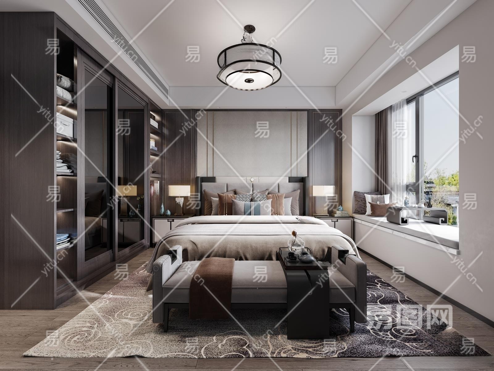 新中式家居卧室3D模型下载