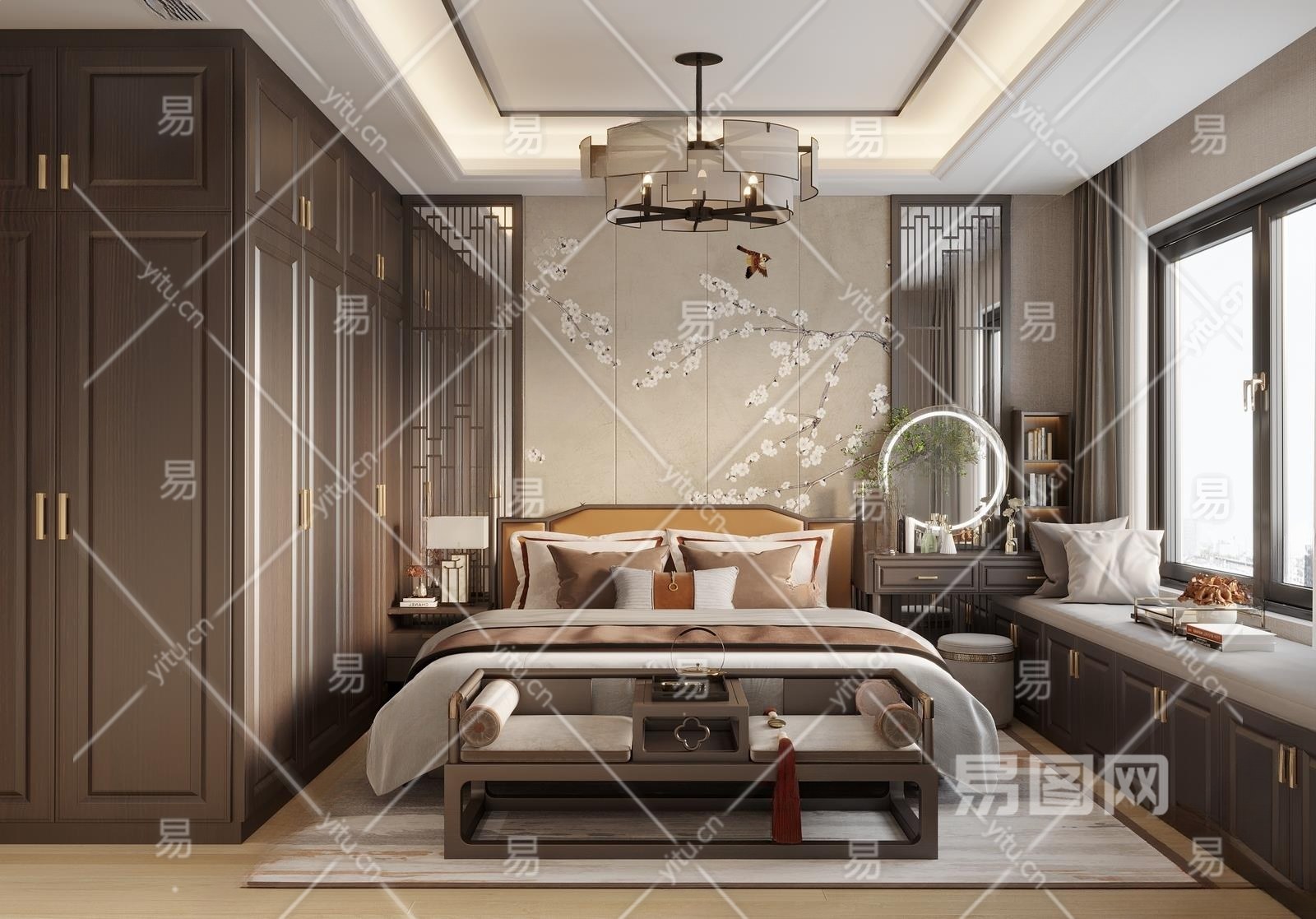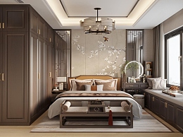 新中式卧室3D模型下载
