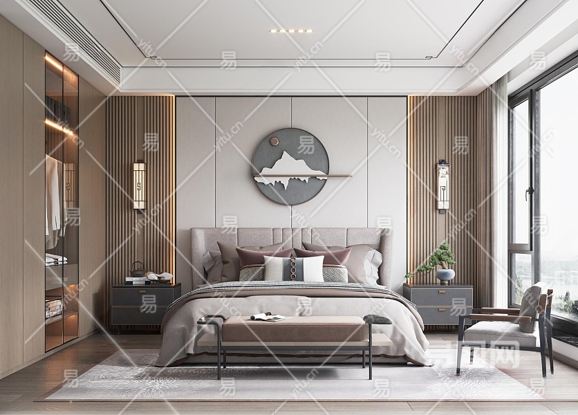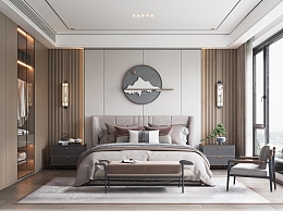 新中式卧室3D模型下载