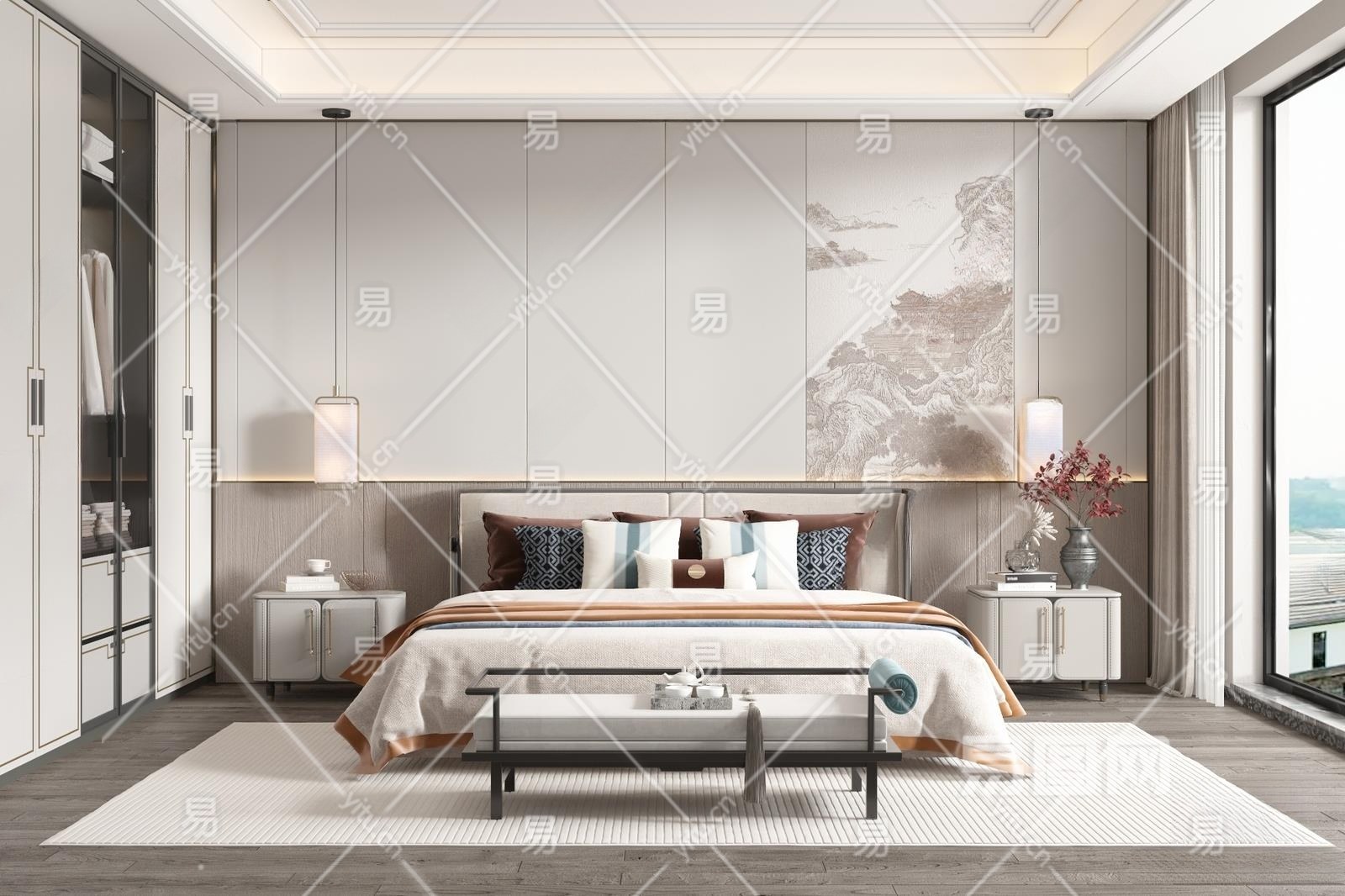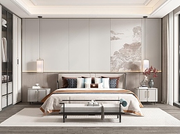 新中式卧室3D模型下载