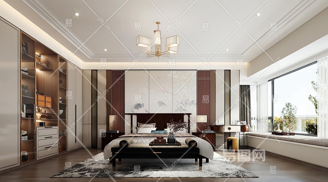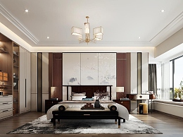 新中式卧室3D模型下载