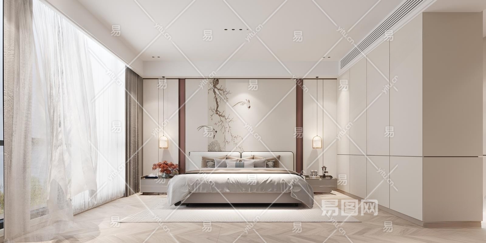 新中式家居卧室3D模型下载
