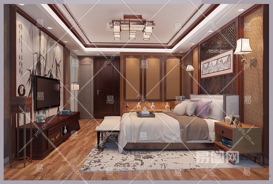 中式家居卧室3D模型下载