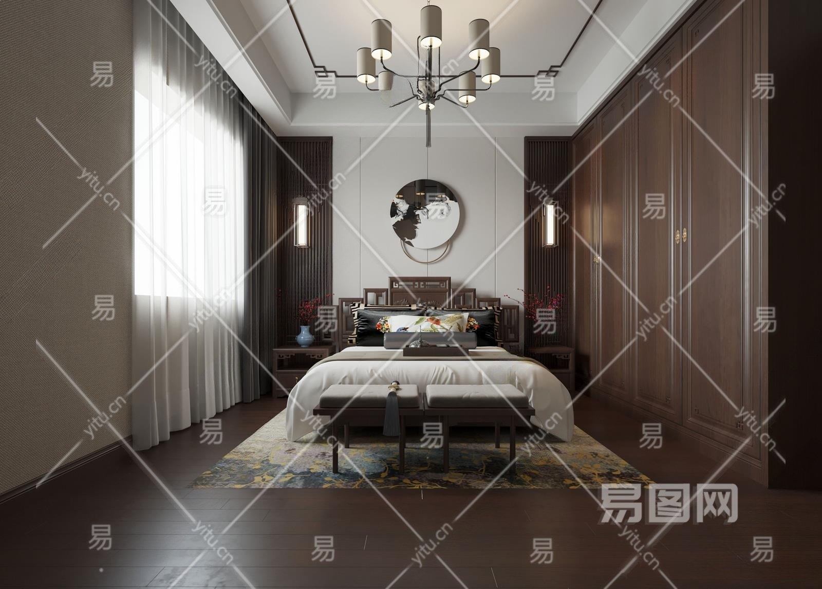 中式家居卧室3D模型下载