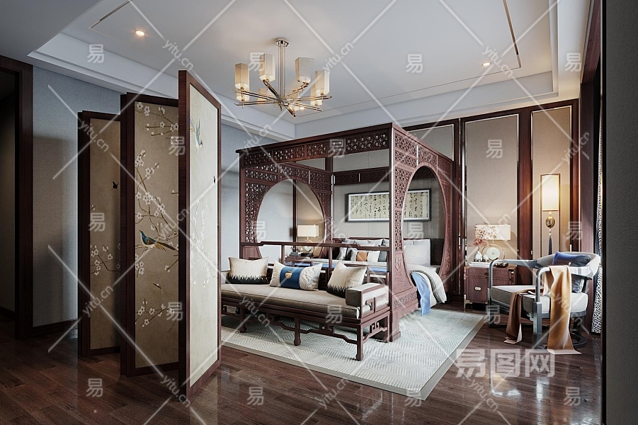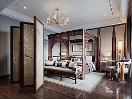 中式卧室3D模型下载