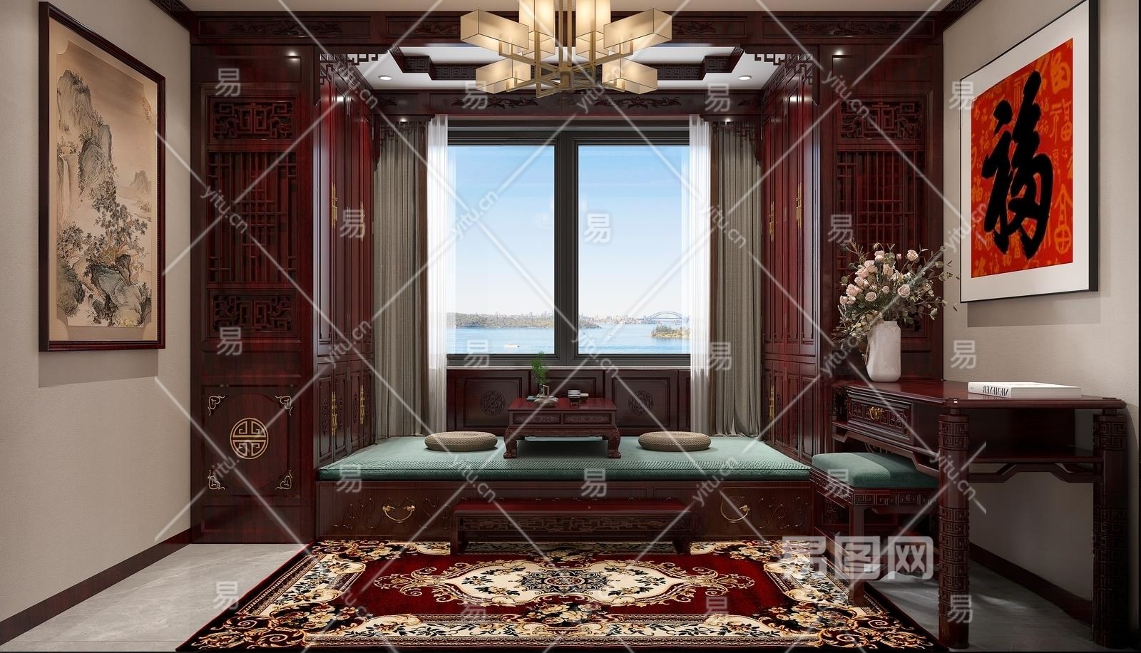 中式榻榻米卧室3D模型下载