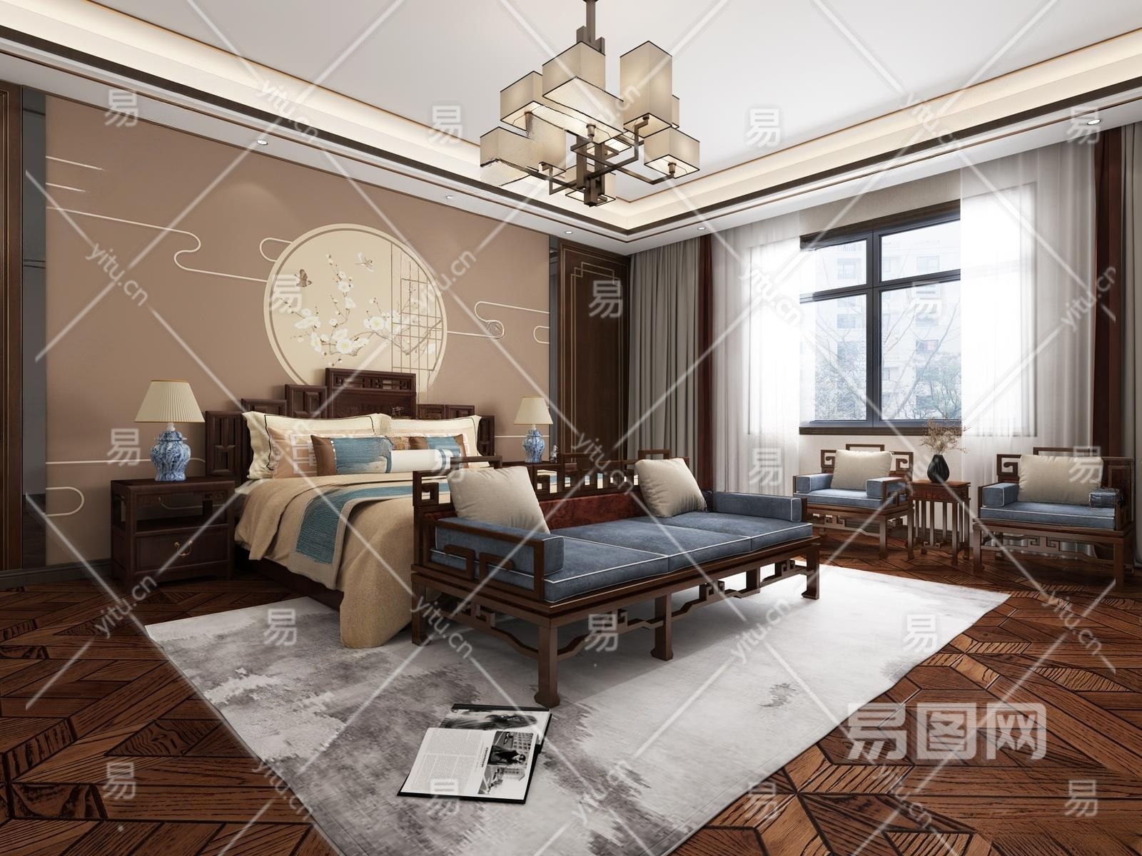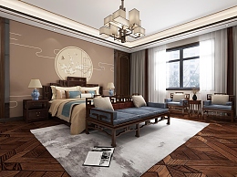 中式卧室3D模型下载