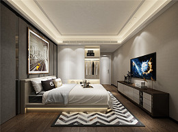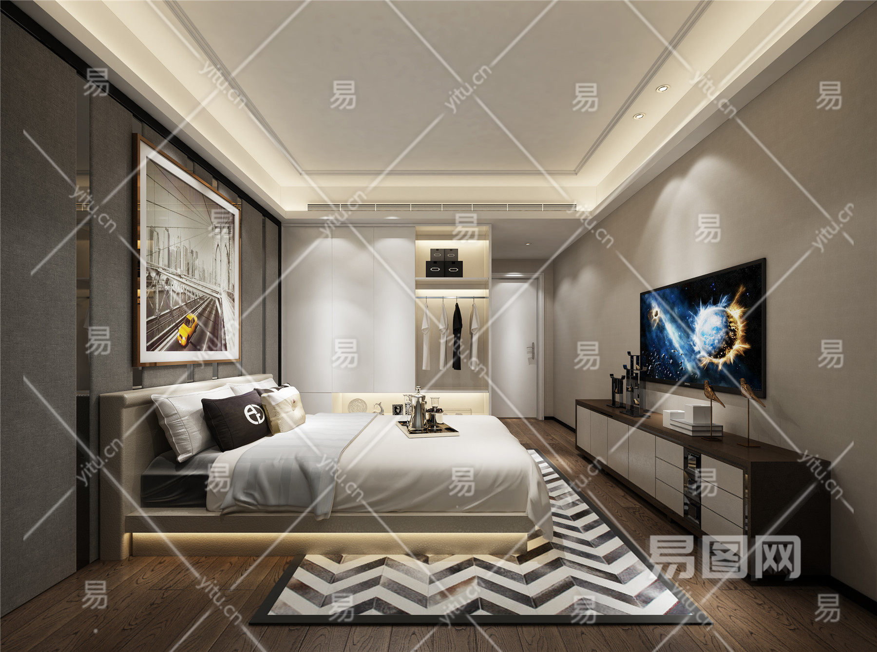 后现代 轻奢卧室 床 床头柜 电视柜 台灯 地毯 轻奢画