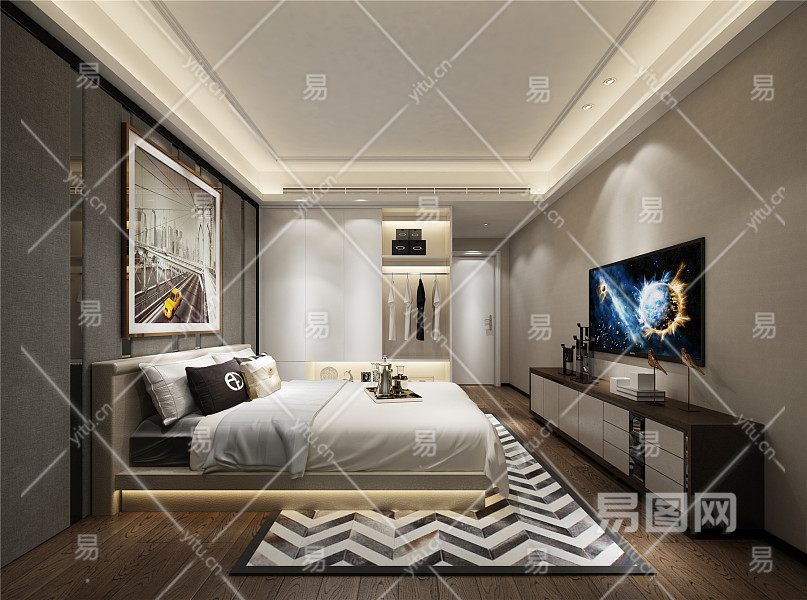 当前的位置:首页 > 3D模型 > 家装空间 > 卧室 > 后现代 轻奢卧室 床 床头柜 电视柜 台灯 地毯 轻奢画