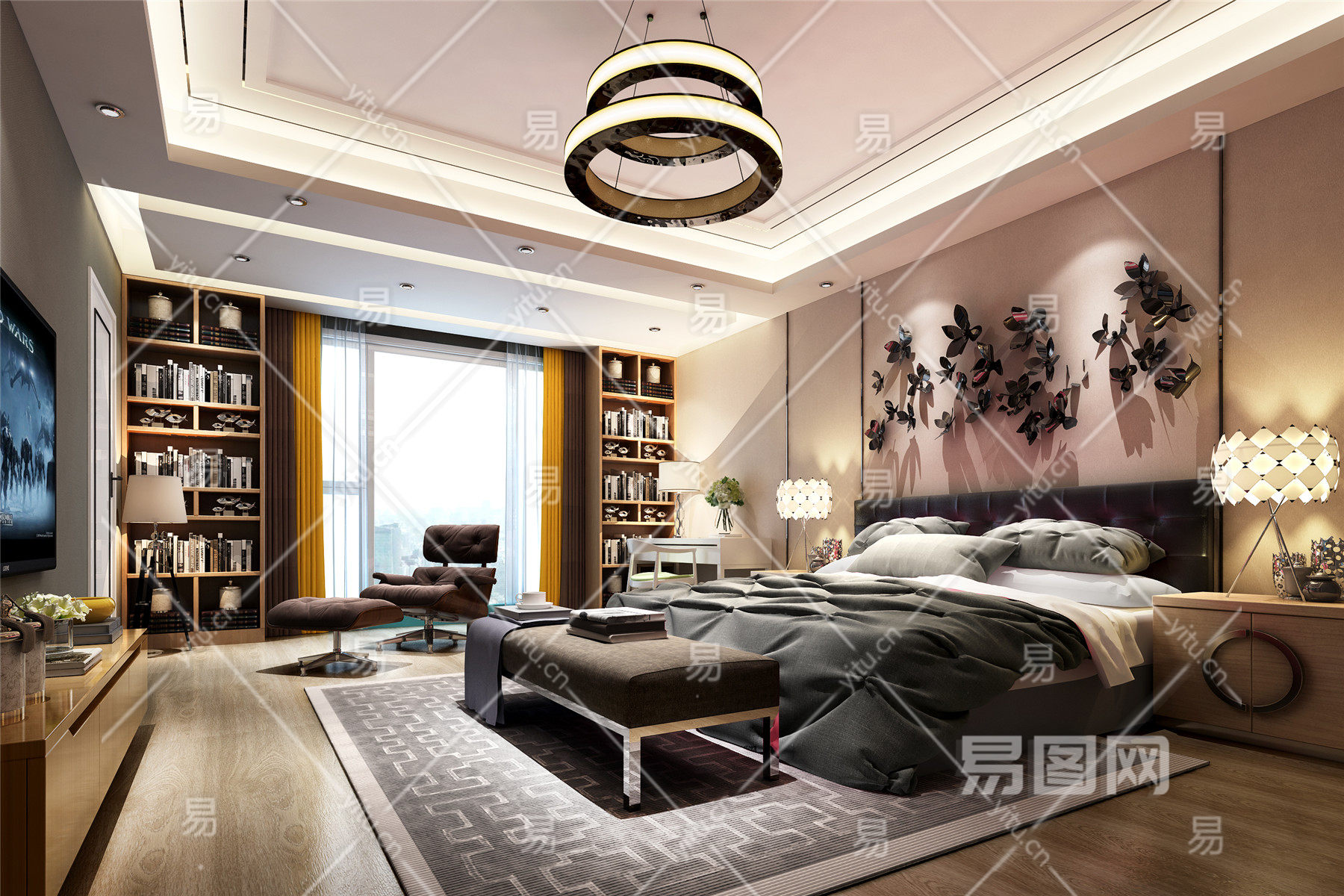 现代 后现代卧室 电视柜 床 床头柜 装饰画