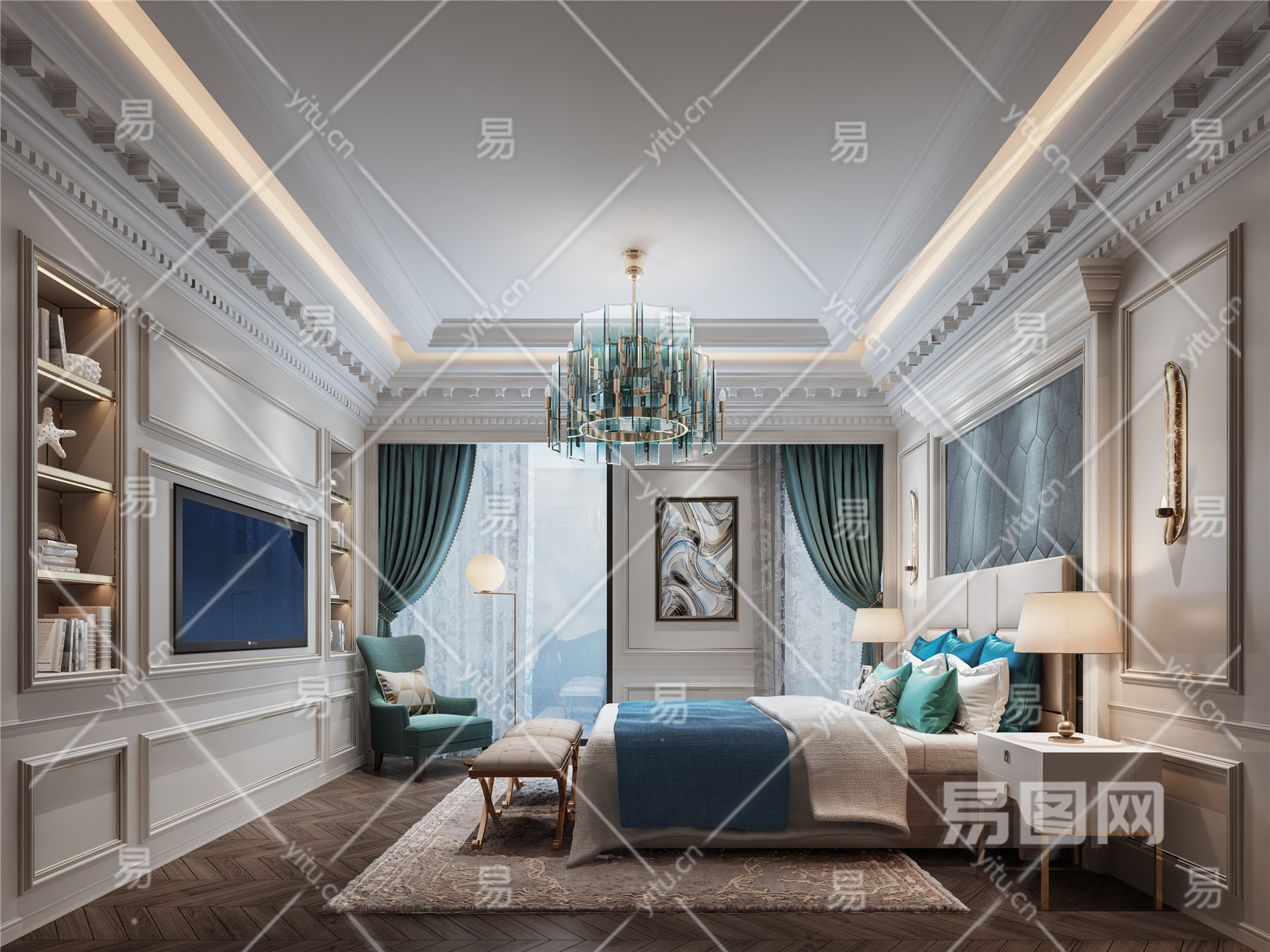 当前的位置:首页 > 3D模型 > 家装空间 > 卧室 > 美式主卧室 美式床头墙 双人床 吊灯