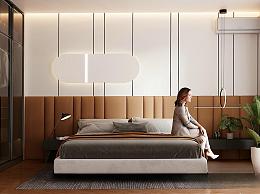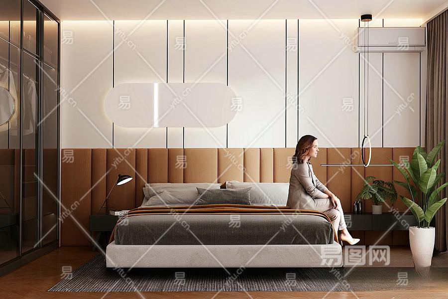 现代卧室 双人床 床头柜 背景墙 装饰品