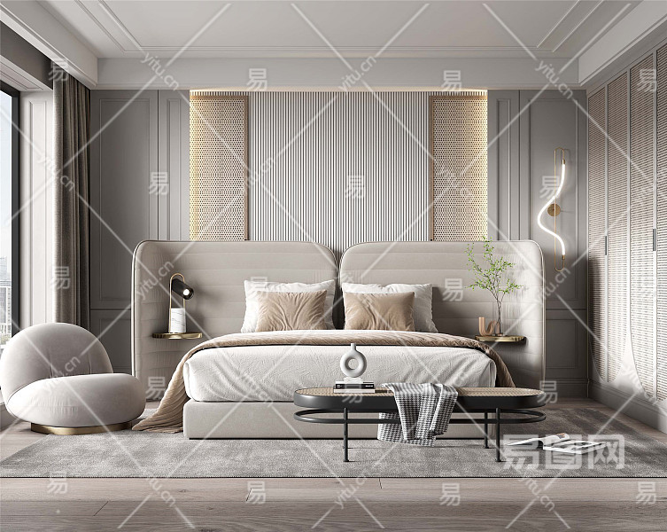 现代卧室 床具组合%978482