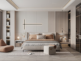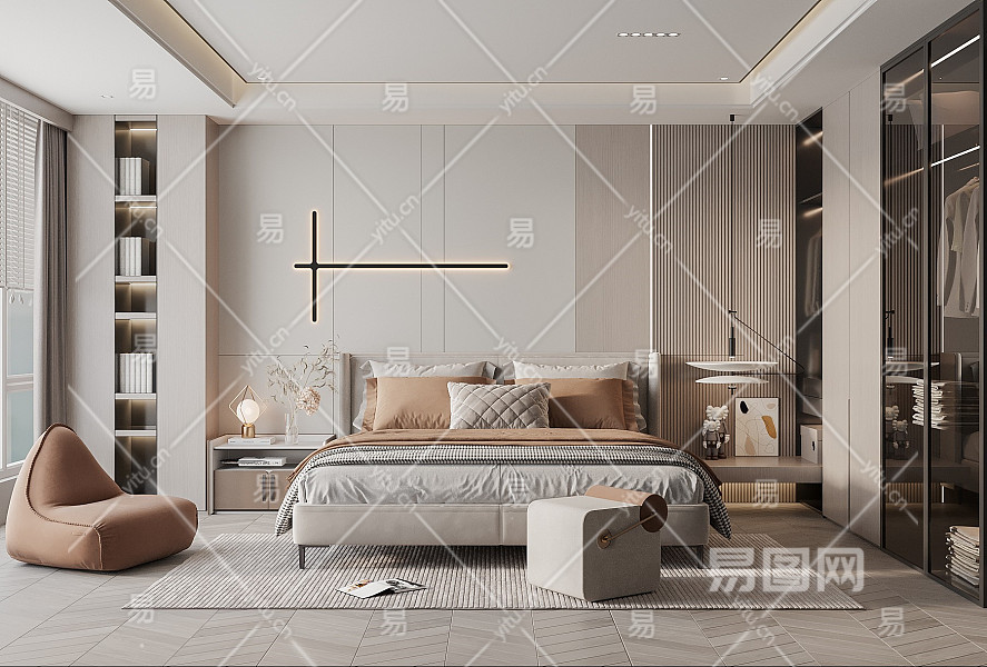 现代卧室 双人床 衣柜 背景墙%978484